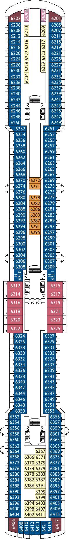| Dekken: | Dek 6 (Ortensia), Dek 5 (Giglio), Dek 4 (Camelia) | |